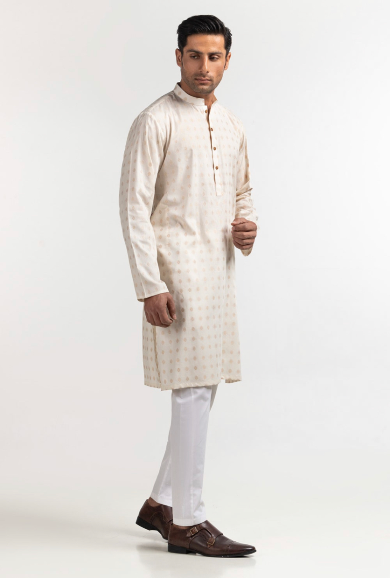On the flip side, the beige kurta is your go-to for a more understated, yet sophisticated look. Both these pieces highlight the versatility of kurtas, making them suitable for any semi-formal or casual occasion.