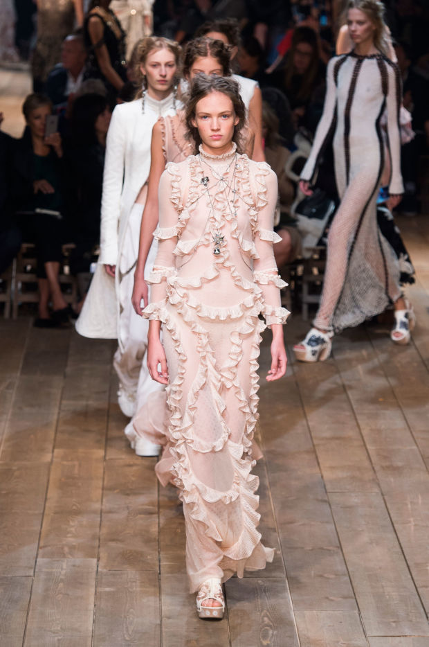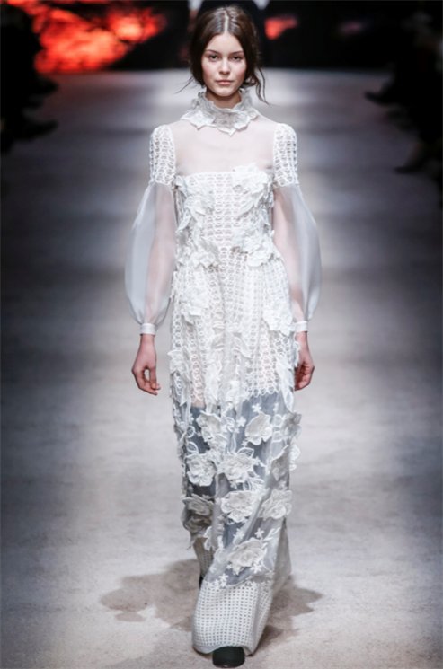 Either buttoned up and pinned down, or artfully disheveled, the current regency revival calls for Victorian severity adapted to a modern spirit. Think Jane Eyre or Dickens’ Estella, only with fewer fires and broken hearts. As seen at Erdem with blues and greys, an abundance of lace and bishop sleeves, the new Victorian maxi dress is high fashion at it’s (surprisingly) wearable best. Try it for the opportunity to feel like your favourite 19th century heroine.