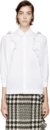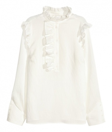 The simplest way to embrace the Victorian trend is by donning a high neck ruffled white shirt. It’s the ultimate wardrobe staple and works well with anything from jeans to cut-offs or high-waisted trousers. For a more opulent take add pearls, red lips and massive cocktail rings a la Dolce & Gabbana.