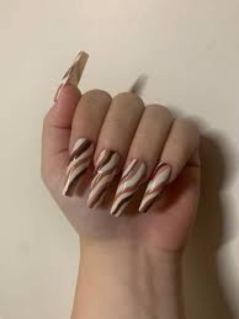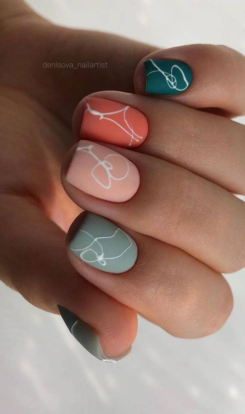 Another great way to create a simple pattern for your nails is by painting them in a base colour of choice and then making swirly lines in a different colour to create a fun yet simple pattern. This design is easy to do and can be done in any colour combo.