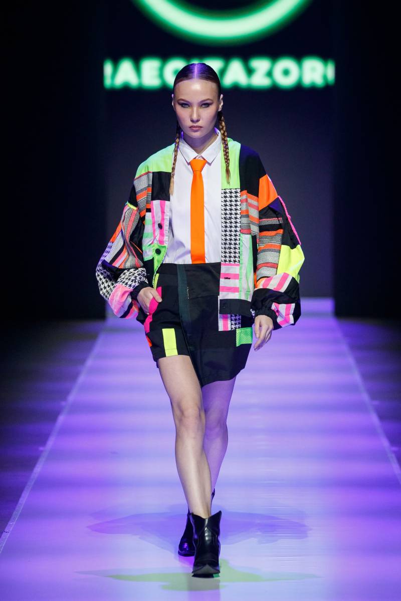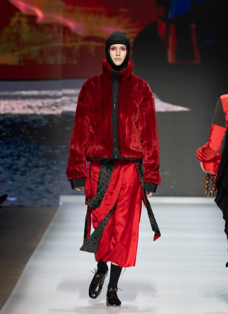 Bringing a burst of neon hues to Moscow’s autumn, RAEGITAZORO’s collection was a celebration of sustainable fashion. Crafted from upcycled materials, this Indonesian brand transformed would-be waste into vibrant, trend-setting pieces. The use of bright tones and diverse fabrics showcased a fearless embrace of modernity, making sustainability the core of high fashion.