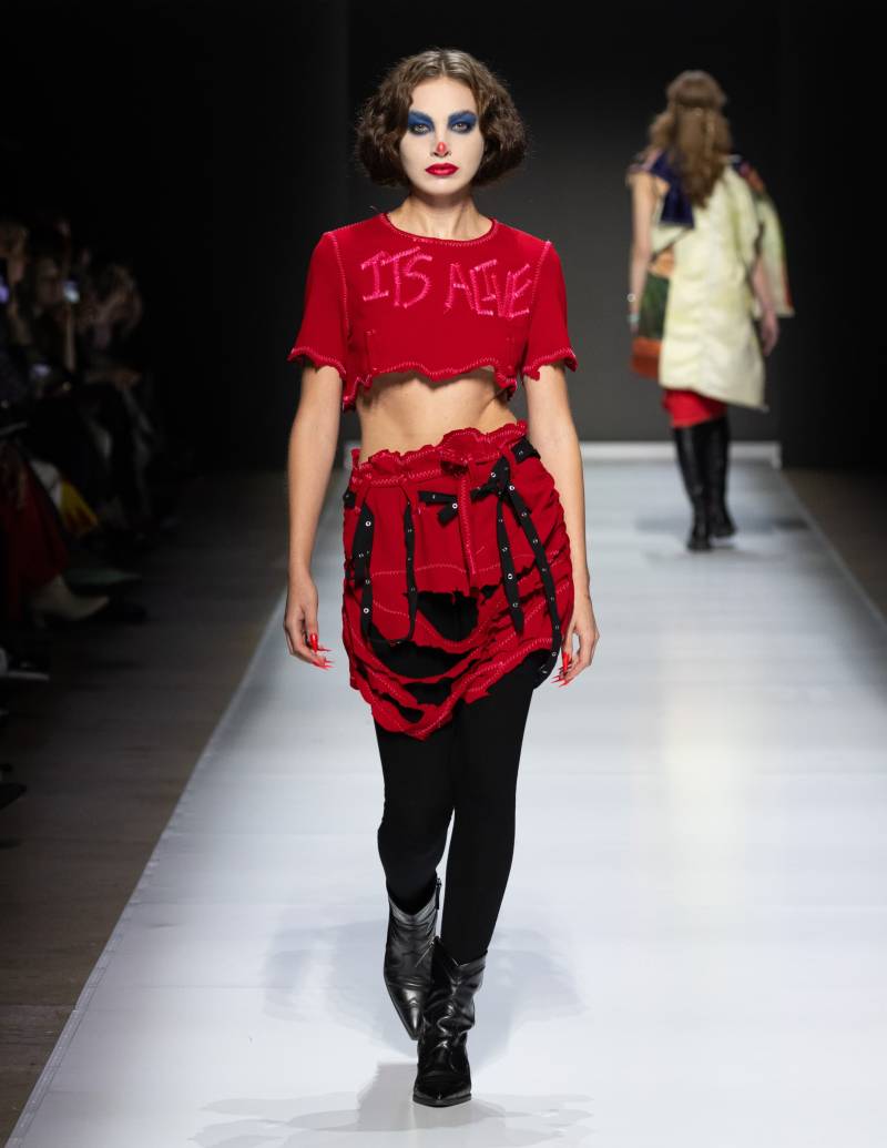 This South African brand celebrated the beauty of the continent with a collection that mixed avant-garde and grunge aesthetics. With bold and striking looks, including a skirt inspired by a loincloth and eccentric details like clowns with tied hands, the brand’s fusion of cultural homage and fashion experimentation captivated the audience, redefining African sartorial storytelling.