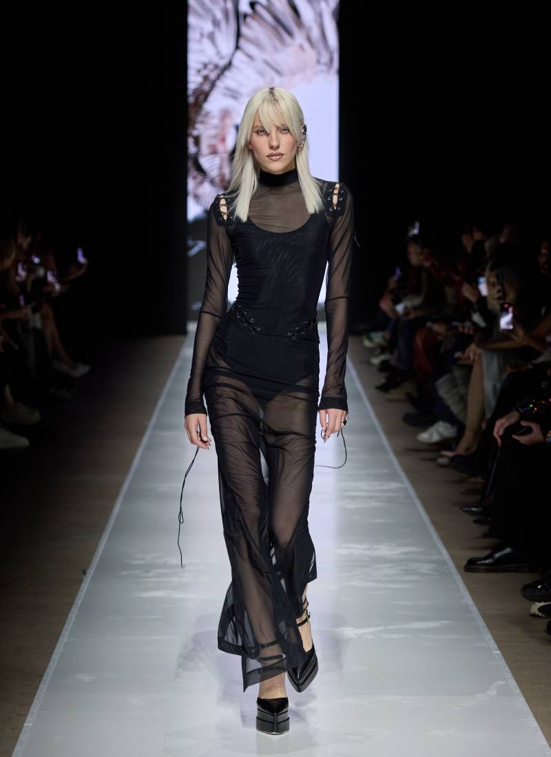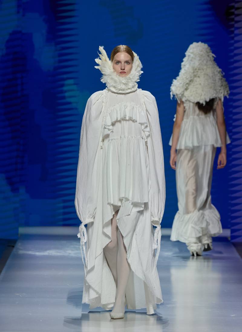 Inspired by the fairytale of Swan Princess, GAPANOVICH’s collection took the audience on a fantastical journey with voluminous ruffles, high collars, and glittering embellishments. Delicate yet grand, each look transported onlookers to a mythical world, marrying high fashion with ethereal themes and intricate craftsmanship.