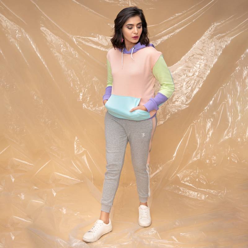 Very easy to guess, all day and night in my tracks. And my design philosophy is that I always want to offer something unique to my audience in Pakistan, fresh colours and tones - something that is not common in our country. It does get risky sometimes since the colours I use in the design are much unlikely such as this year; I worked with neon, nude pink, mint, orange color tracksuits - for a moment, I was doubtful that who would wear these colours, but Alhamdulilah we sold out quickly. And the results show how the customers always want something new every day rather than wearing regular colours.