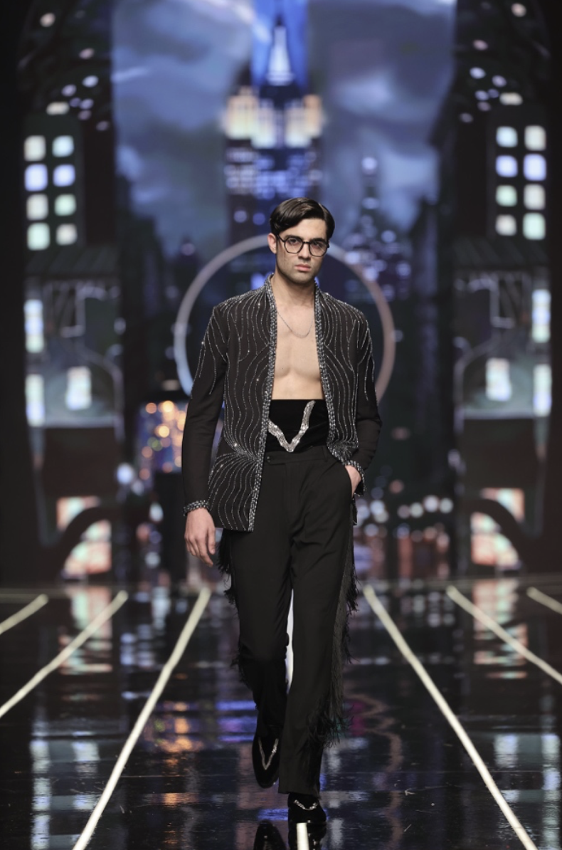 The collection was a testament to the brand’s philosophy: delivering ensembles that exude class, elegance, and individuality. Each piece was meticulously tailored to perfection, featuring statement-making cuts, structured jackets, and detailed accessories. From sherwanis with subtle yet intricate embroidery to contemporary formal wear with bold, eye-catching patterns, the collection catered to the modern groom and every man who appreciates impeccable style.