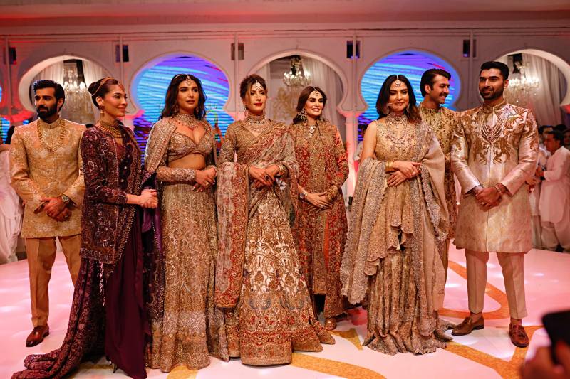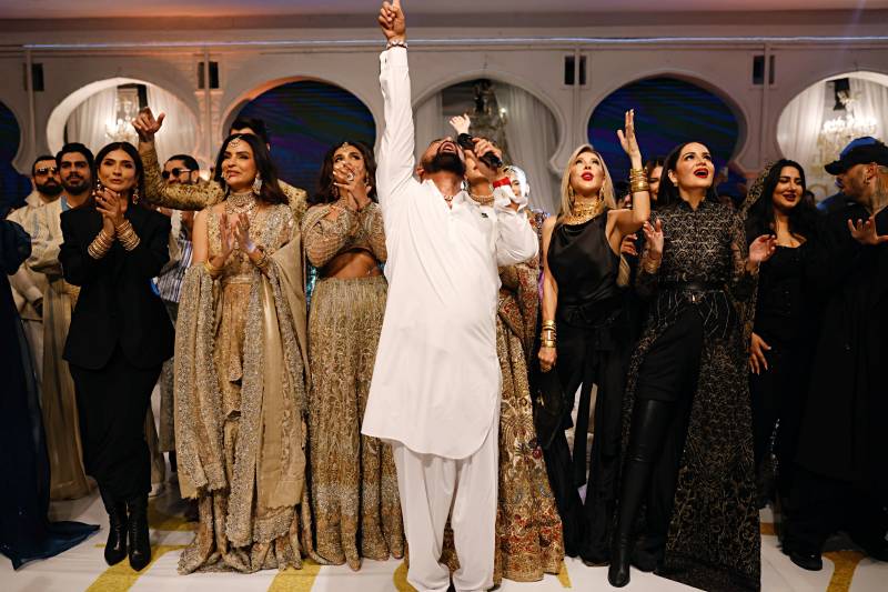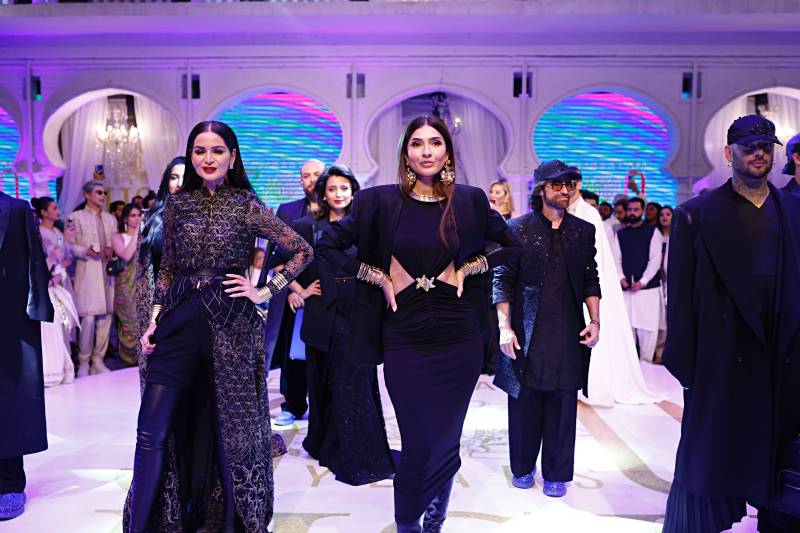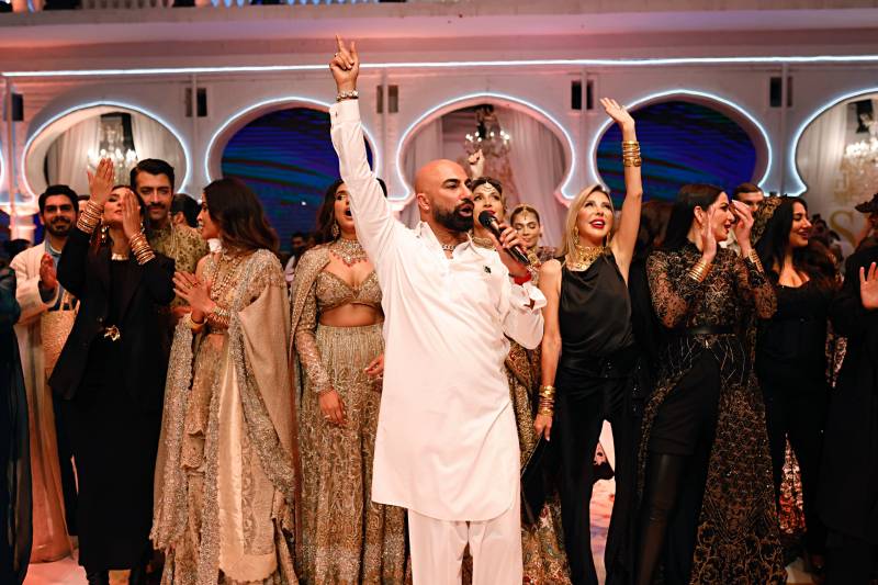 And then came the pièce de résistance—the grand finale showcasing HSY's couture collection. It was a symphony of opulence and elegance, with the runway adorned by HSY's esteemed muses, iconic figures who have been instrumental in shaping his illustrious career. From the legendary Vaneeza Ahmed to the captivating Mehreen Syed, and the show-stoppers Hasnain Lehri, Amna Ilyas and several others, each model radiated grace and poise, embodying the timelessness of HSY's creations.