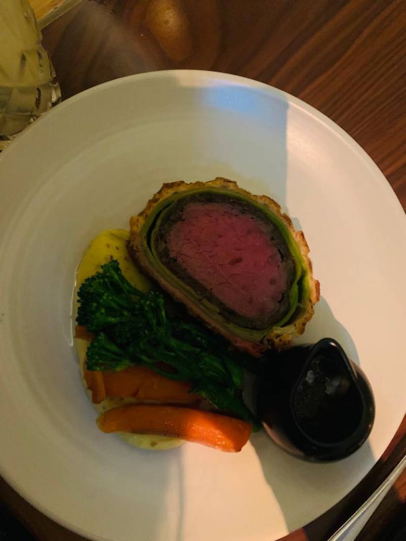 The restaurant also has a stunning interior design, with a grand chandelier and leather seating that creates a luxurious ambiance.