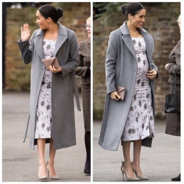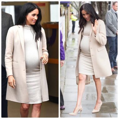 The Duchess wearing a cream maternity dress from H&M paired with a cashmere beige Armani coat