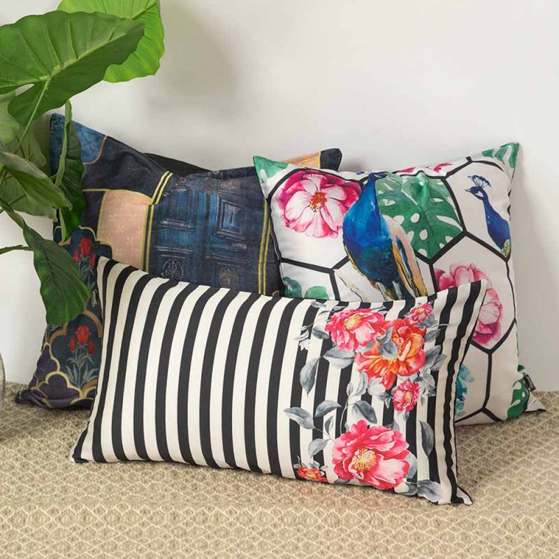 Ideas Home has on offer a wide range of digital printed and regular cushion covers in a number of different sizes. Why just have 2 boring pillows when you can have 4 or even 6. Play around with the color, the texture or even the shape of the pillow. Figure out what combination works for your setting and celebrate the gift of comfort.