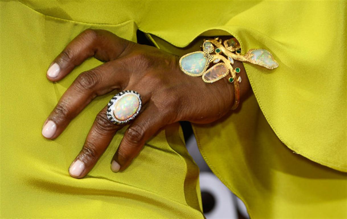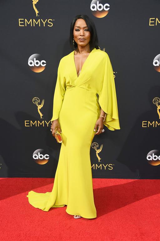 Without a doubt, Project Runway alum Christian Siriano was The Emmy’s biggest fashion winner. The designer dressed nine women of a spectrum of ages and shapes, but it was Angela Bassett’s custom chartreuse gown that really stood out. The design may be relatively simple, but it creates a strong impact. The bold jewelry and Rene Caovilla silver knotted sandals were also the right way to go.