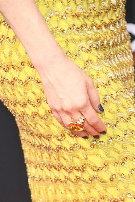 Sure, the Downton star’s floral cloqué tiered dress by Oscar de la Renta may seem a bit over-the-top, but if Lady Mary Crawley can’t work a little fussiness, than who can? We’re in love with its dramatic, cascading flounces as well as the silk faille belt. Stuart Weitzmen ‘Nudist’ sandals and Harry Winston bling and gorge fuchsia lippy completed the look.