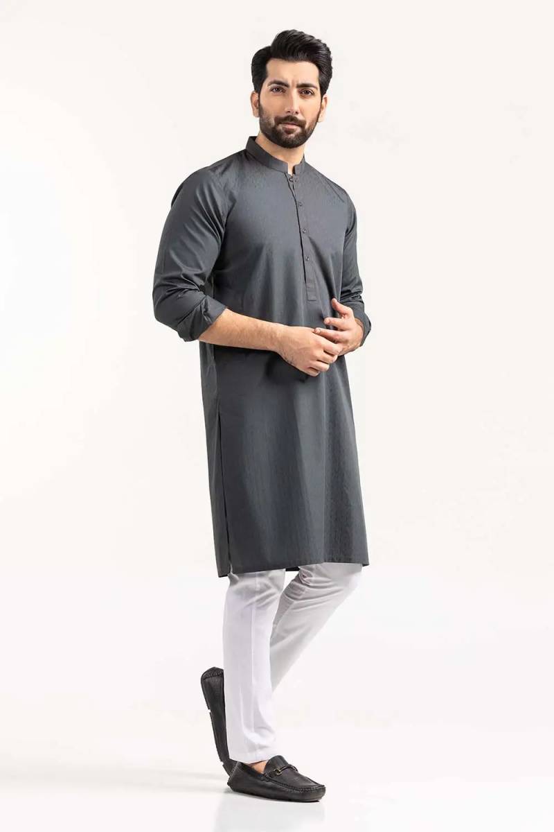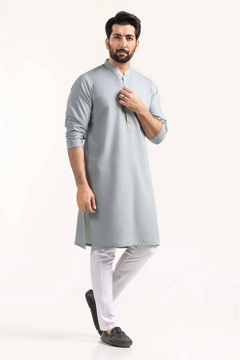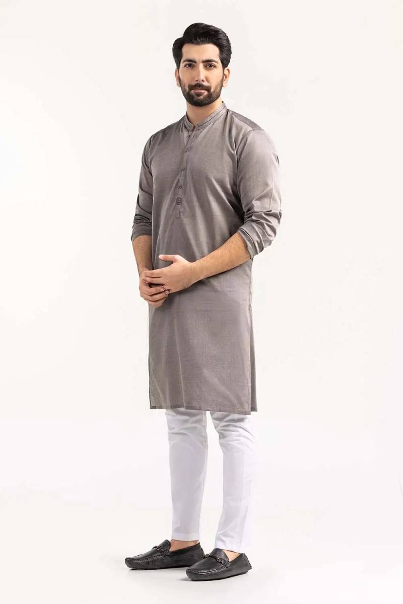 Grey is the first color that comes to a man’s mind when they want to pick an outfit for any occasion. The kurta has a potential to add grace to a man’s personality with its subtle embroidery on the collar that is elevating the overall look of the Kurta.