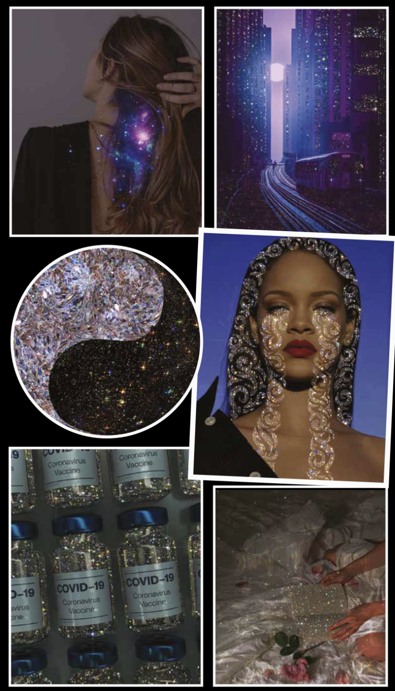 ‘Many, many years coming across another crystal pattern, being a collage artist I played around with it, and ended up creating sparkling art. It was merely one of the best accidents I had ever come across’