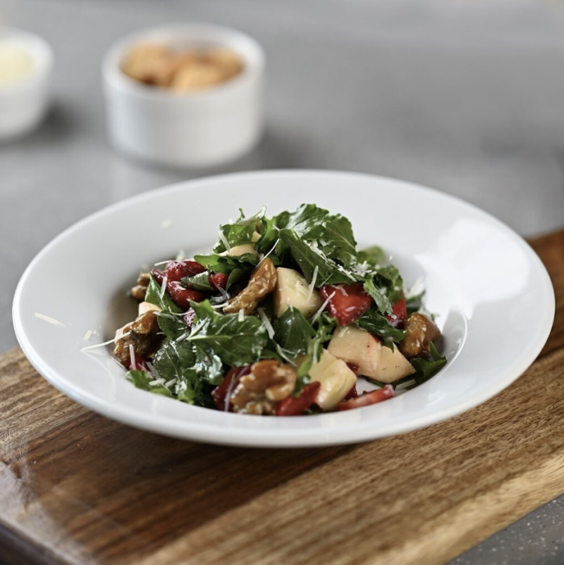 • Rocket and Walnut Salad: A symphony of textures and tastes with candied walnuts, apple slices, strawberries, rocket leaves, and a sharp Dijon mustard dressing.