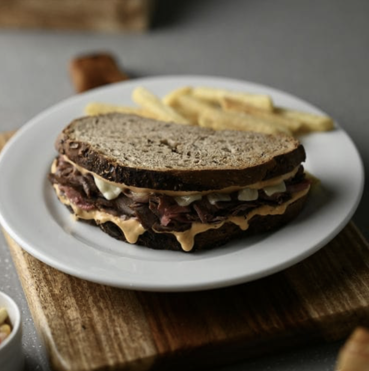 • Deli Style Beef and Emmental: Hearty roast beef meets melty Emmental cheese, layered between slices of toasted Kraftkorn bread.