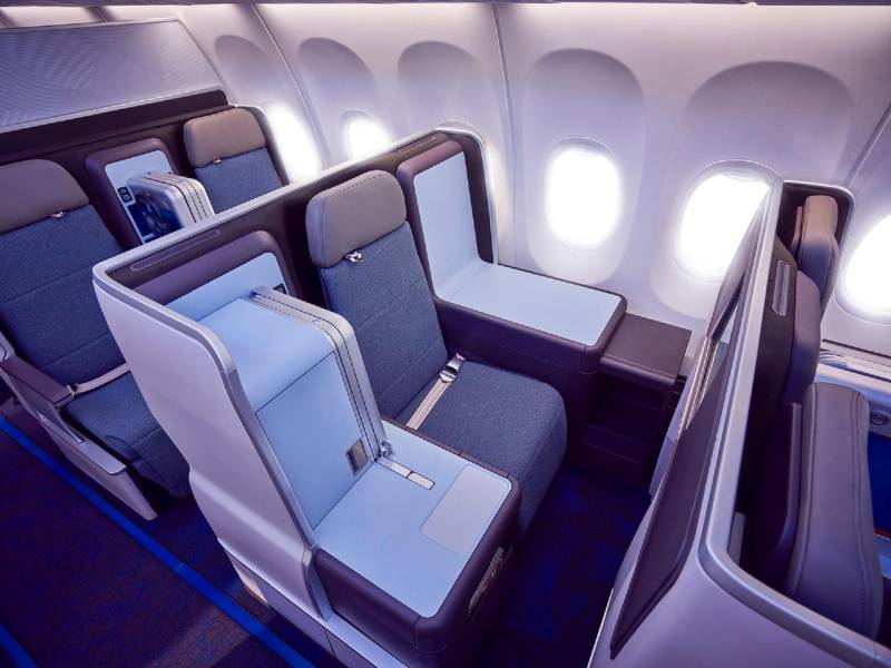Business Class passengers can experience the airline’s signature lie-flat seat that rivals the experience offered on a wide-body aircraft. Featuring a bed length of 75 inches, AC and USB A power outlets, generous stowage as well as ambient lighting, enjoy exceptional comfort throughout your flight along with internationally-inspired menus.