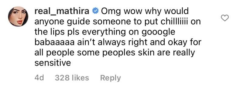 All the ingredients are easily available at everyone’s home, and I don’t think I need to explain the hazards of playing with chilli powder, especially it is very dangerous for children. Your followers putting chilli powder on their fragile lips, dying with pain … Dananeer, why are you doing this to your followers? It’s high time, you need to come out of your fantasy world, that overnight fame, and start posting adult and responsible stuff because it is a public platform, and you can’t keep on playing with the health of everyone.