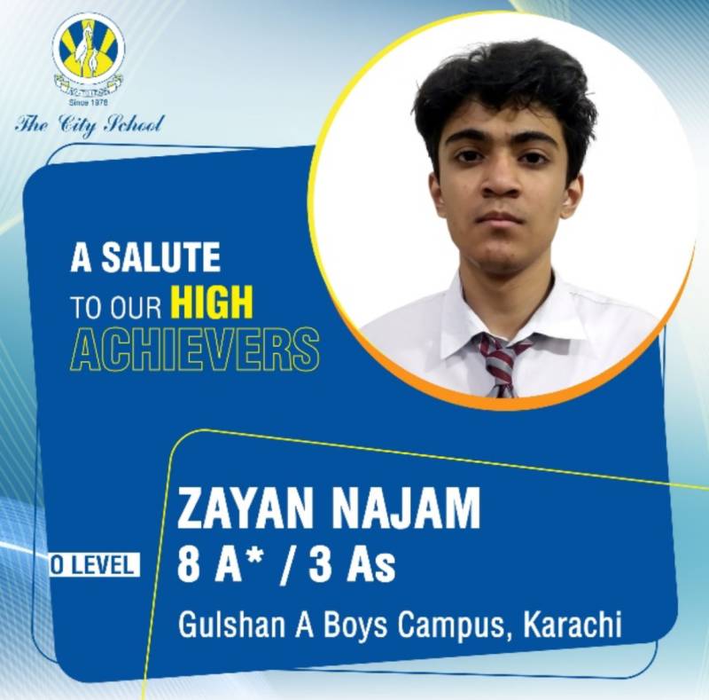 1. Zayan Najam 8A* & 3As, The City School Gulshan A Boys Campus, Karachi