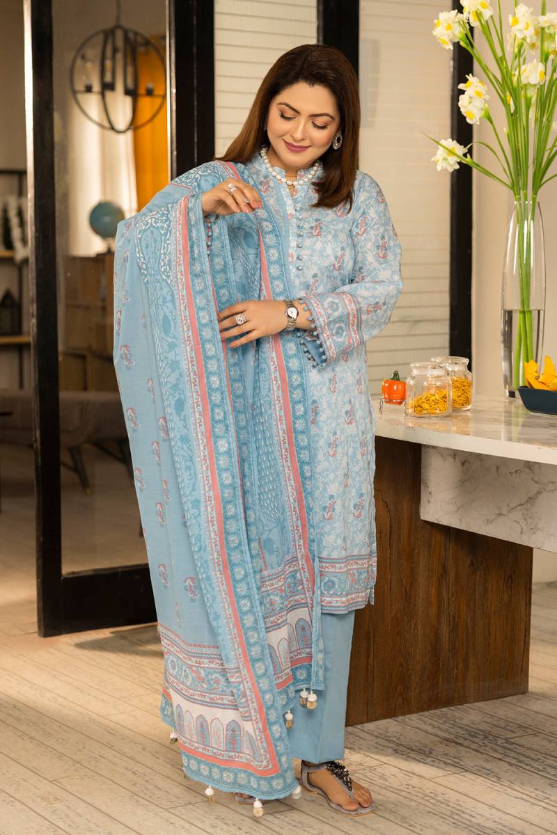 What else could be better than flowing through a day in fabrics that feel like a gentle breeze. The Mother Lawn Collection features breathable lawn suits, perfect for Pakistan's scorching summers. Take the 3-piece printed lawn unstitched suit with chiffon dupatta (BM-42014), for example. Its soft, printed lawn shirt in this earthy shade and comfortable trousers let you move freely, while the delicate chiffon dupatta adds a touch of elegance and lightness.