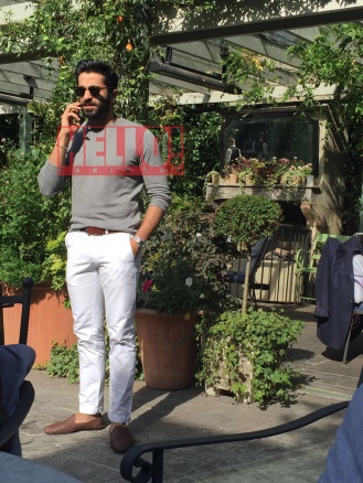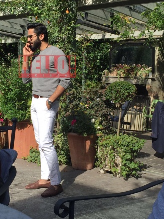 Sheheryar pairs a solid combination of white pants with a grey sweat shirt - can never go wrong with this one! And what really makes this look so great is the fitting. He nails the look perfect for a brunch.