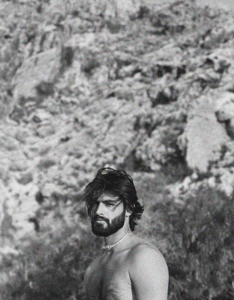 Against the barren backdrop, the model stands as a symbol of timeless resilience. Draped in minimalist fabric, he embodies the raw essence of survival and the elegance of simplicity. Embrace the wild and discover strength in solitude.