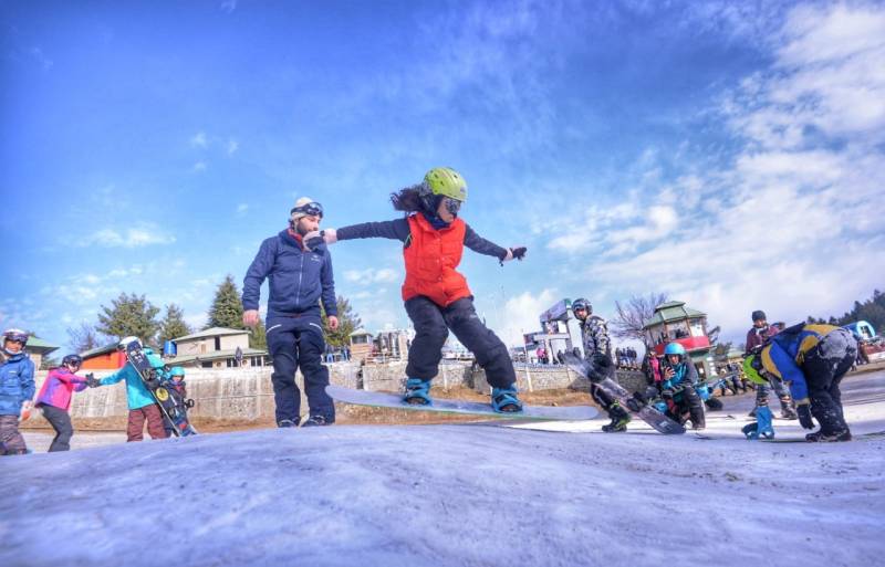 The next day commenced in somewhat of a similar manner, however, the yoga was held indoors this time as everything – and we mean everything – was covered in a lush blanket of pure white snow. It was the most breathtaking sight we had ever seen – and all this from the comfort of the Hotel. Soon after, we wore our snow gear – puffer jackets and warm layers – and headed off to the Malam Jabba Ski Resort for the delayed adventure. There we saw the players for the Snowboarding Championships practicing on the steep slopes making us all go ‘Oooooh! Aaaaaah!’