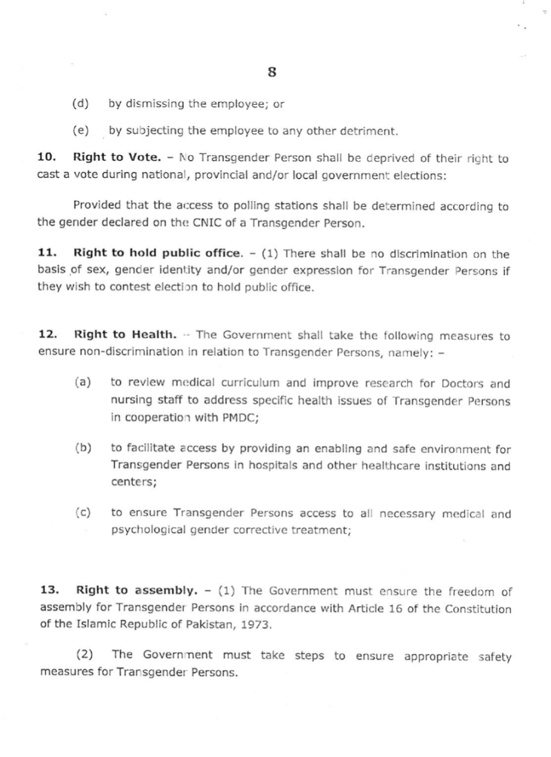 According to religious organizations, over 28,000 people registered to change their gender at NADRA since then. They further argue that the act promotes homosexuality and same-sex marriage. For example, a male will be able to register himself as female, enabling him to marry a male and vice versa. However, the Senate’s Standing Committee on Human Rights rejected it.