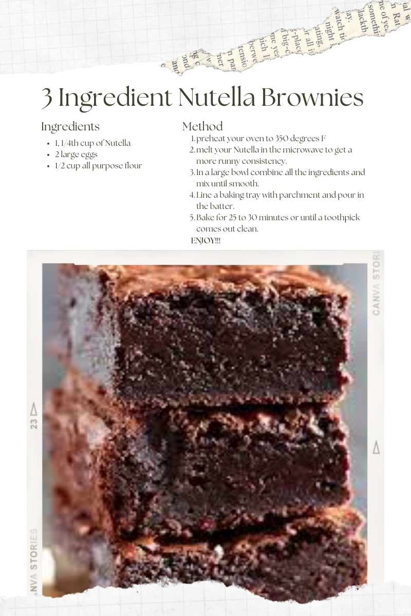 4. THREE INGREDIENT NUTELLA BROWNIES