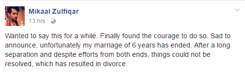 Mikaal Zulfiqar Announces Divorce On Social Media
